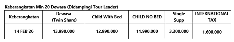 Harga Termasuk | Harga Tidak Termasuk | ||